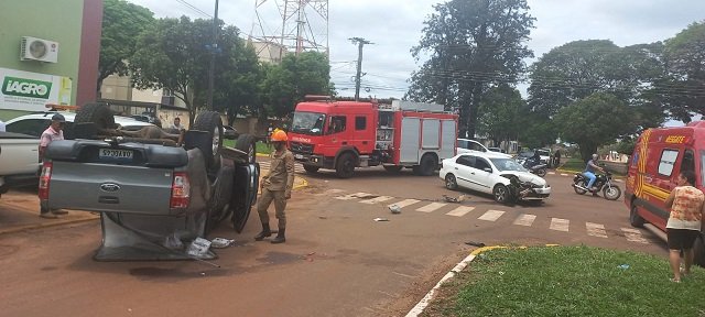 Colisão entre dois veículos, acaba deixando um virado