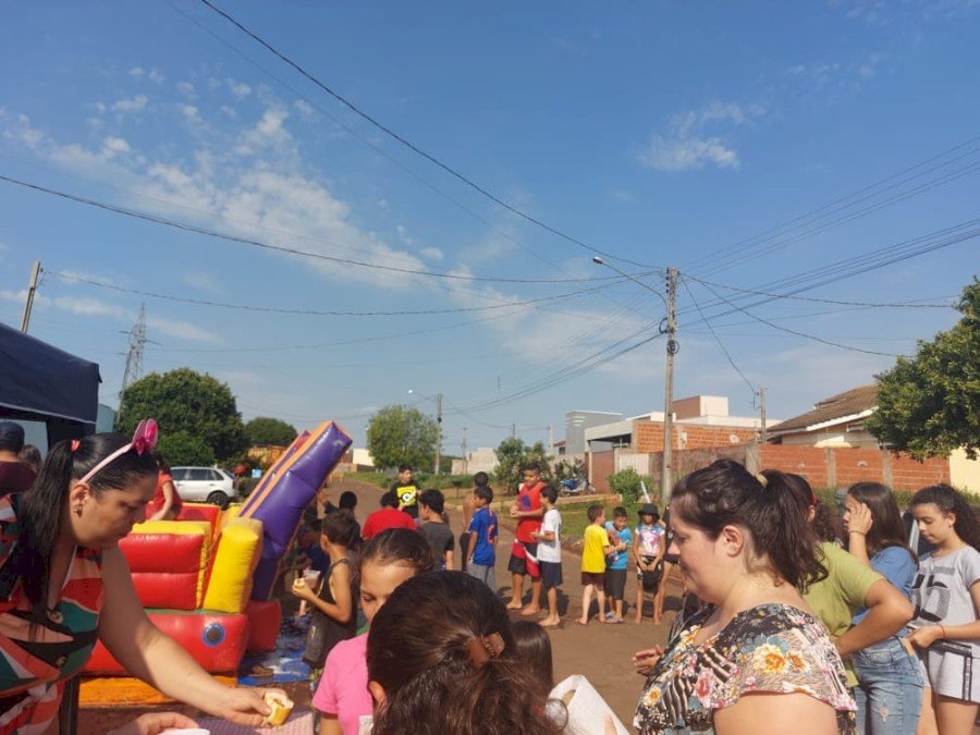 Na ocasião foram oferecidas as crianças brinquedos infláveis, algodão doce, pintura artística, picolés, cachorro quente e diversas gincanas.