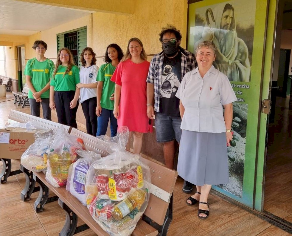 Os alimentos foram recebidos pela freira Antônia Deitos.